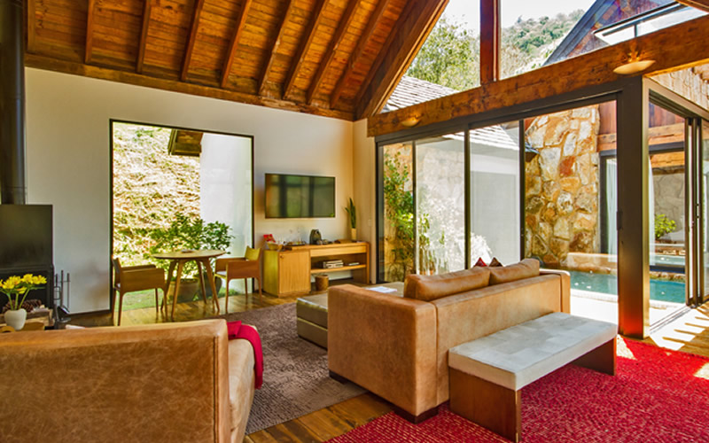 Com um visual totalmente integrado aos cenários selvagens da região, o hotel propõe que os viajantes deixem as telas de lado – não há televisões nos quartos – e contemplem as belezas locais por meio de caminhadas, cavalgadas e passeios de barco.