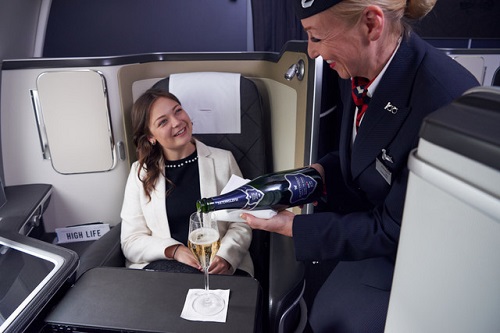 Uma equipe de enólogos da British Airways trabalhou com produtores de vinho do Vale de Hattingley para criar um Blanc de Noir 2015. O vinho é uma mistura dominante de Pinot Noir que funcionará perfeitamente em altas altitudes. As uvas foram colhidas à mão e prensadas suavemente antes de serem engarrafadas, em Hampshire.