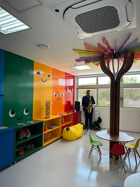 Espaço destinado às crianças internadas favorece o bem-estar dos pequenos pacientes e conta com mesas para estudo e brinquedos interativos e educativos