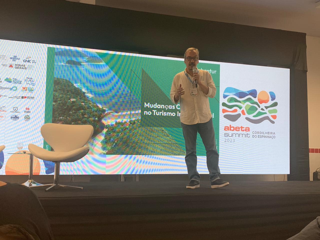 Professor falou sobre o papel do turismo na preservação ambiental durante o Abeta Summit 2023, congresso realizado em Grão Mogol, no norte de Minas Gerais