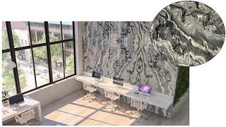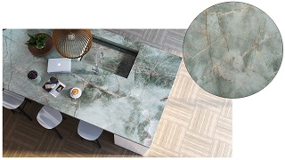 Já os quartzitos Emerald Green, Phoenix Grey e Meridian unem a estética refinada e suntuosa dos mármores à resistência elevada dos granitos, o que possibilita uma ampla versatilidade de aplicações e paginações. Apresentam uma cartela de cores variadas de tons de frios e quentes com um toque de translucidez que tornam as pedras ideais para projetos luminotécnicos.