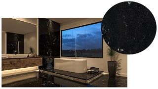 Via Láctea - O granito recém-adquirido com exclusividade pela Guidoni traz em sua superfície padrões e desenhos diferenciados, com um intenso tom escuro e interferências sutis de veios claros que cria um visual em movimento que se assemelha ao universo, vindo daí o nome da pedra;