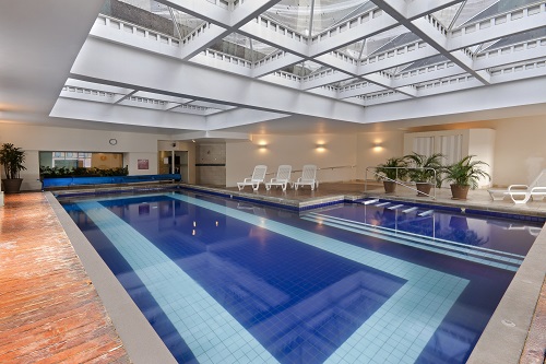 Localizada no 28º andar do hotel, a estrutura privilegia o banhista com vista panorâmica para a capital paulista