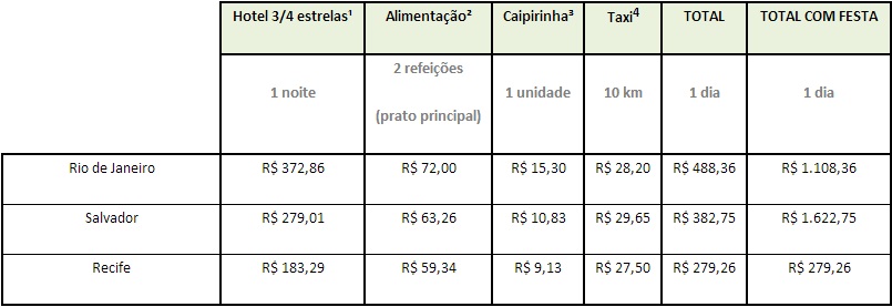 Comparativo de preços para uma pessoa curtir um dia de carnaval no Rio de Janeiro, Salvador ou Recife: (Clique na imagem e visualize a tabela)