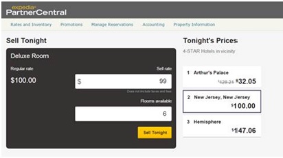 O “Venda desta noite” está acessível por meio do Expedia Partner Central, que informa aos hoteleiros em tempo real as taxas diárias do mercado, e também os detalhes necessários para que possam competir com os melhores preços e aumentar o número de reservas no mesmo dia.
