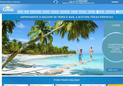O portal www.costacruzeiros.com.br está com novo layout e navegação mais simples. Já o novo aplicativo apresenta toda oferta nacional e internacional da companhia marítima para 2014 e 2015